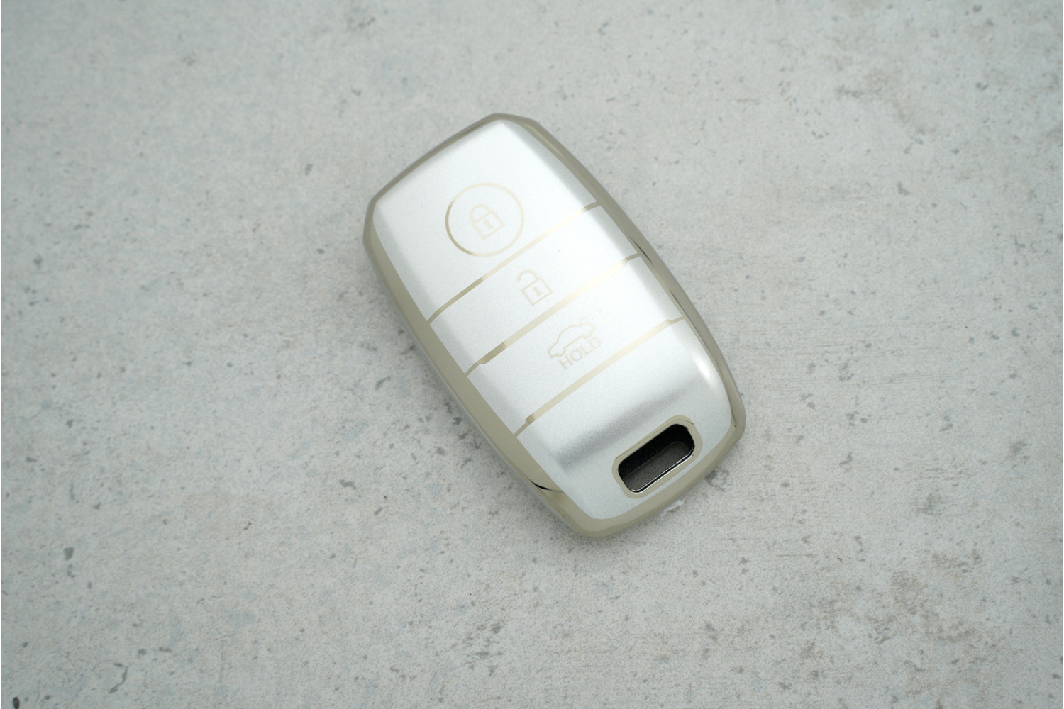 Чохол KIA 3 кнопки сірий-срібло поліуретан (Soul) — міцний та стильний захист для ключа, який оберігає його від подряпин, забруднень та щоденного зносу, зберігаючи при цьому елегантний вигляд та повну функціональність.
