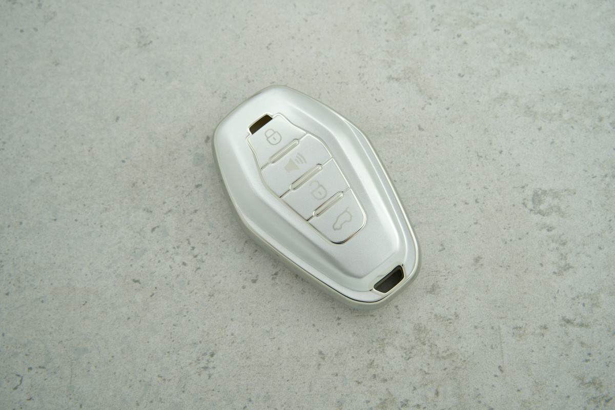 Чохол Chery 3+1 кнопки сірий-срібло поліуретан (Jetour X70 / X70 Coupe / X90) — надійний аксесуар для щоденного захисту автомобільного ключа, що поєднує практичність і сучасний вигляд.