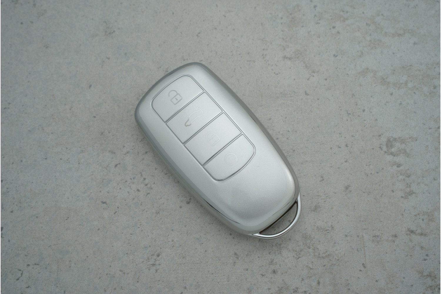 Чохол Chery 4 кнопки сірий-срібло поліуретан (Tiggo 2021) — сучасний та практичний аксесуар для збереження ключа в ідеальному стані. Надійно захищає корпус від подряпин, потертостей і механічних пошкоджень, водночас підкреслюючи стиль автомобіля.