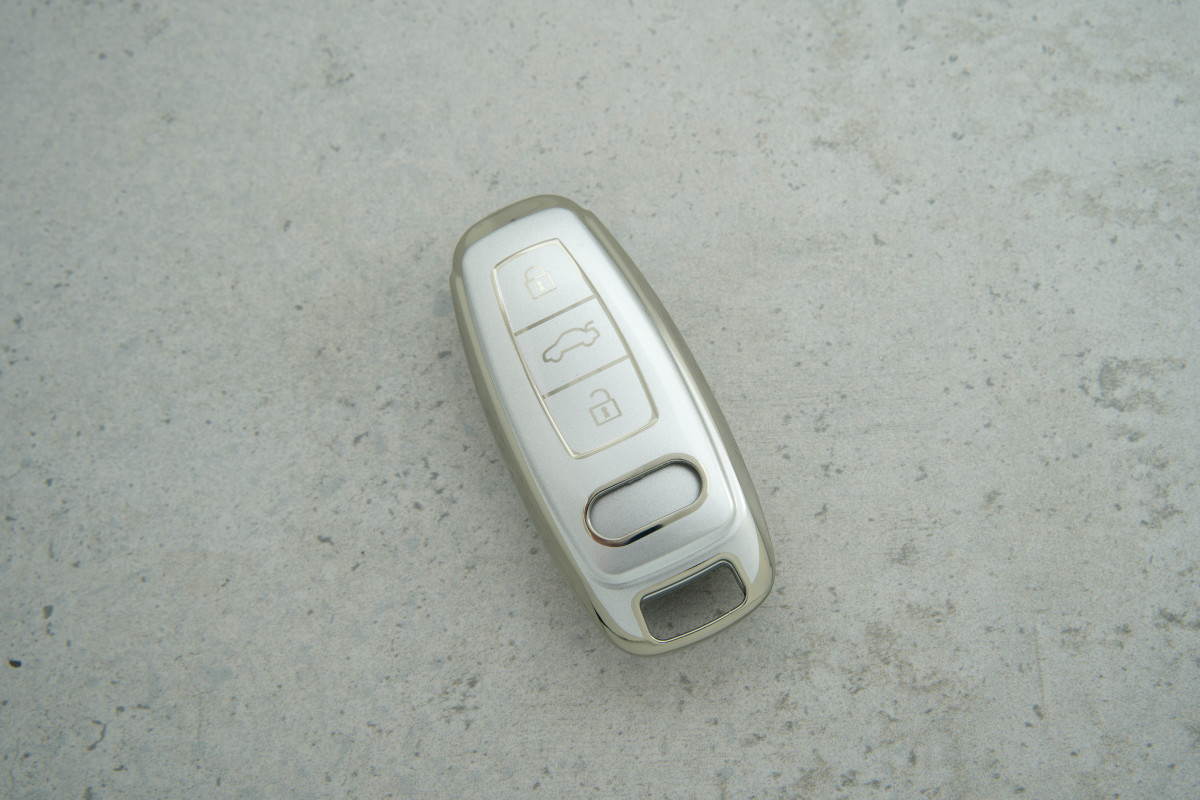 Чохол Audi 3 кнопки сірий-срібло поліуретан (A3 / A6 / A7 / A8 / Q7 / Q8 / E-tron) — елегантне та практичне рішення для захисту ключа від подряпин, потертостей і щоденного зносу.
