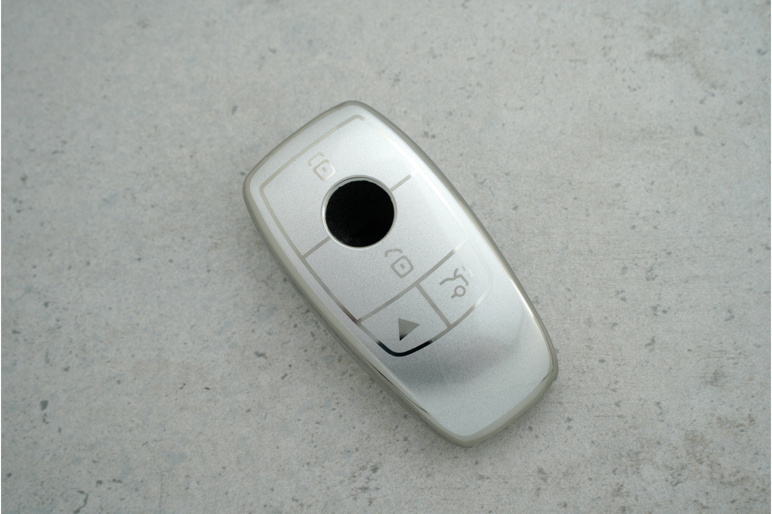 Чохол Mercedes-Benz 3+1 кнопки сірий-срібло з поліуретану — стильний та надійний захист для ключа, який поєднує міцність матеріалу та елегантний сучасний вигляд.
