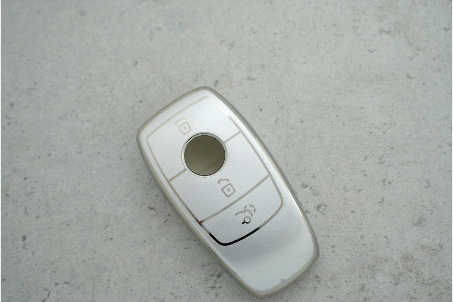 Чохол Mercedes-Benz 3 кнопки сірий-срібло з поліуретану — елегантний та практичний захист для ключа, що поєднує міцність матеріалу та сучасний стиль.
