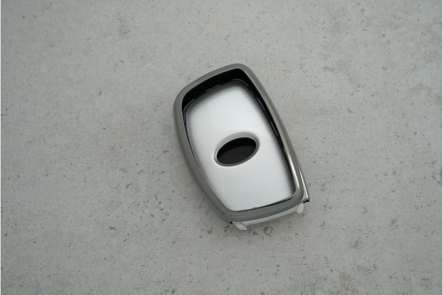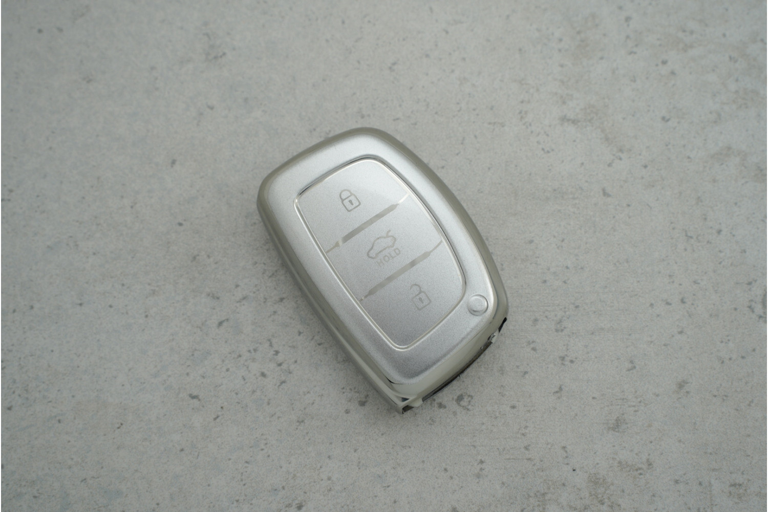 Чохол Hyundai 3 кнопки сірий-срібло з поліуретану — практичний та сучасний аксесуар для ключа Hyundai Mistra та Elantra, що забезпечує надійний захист і акуратний зовнішній вигляд щодня.