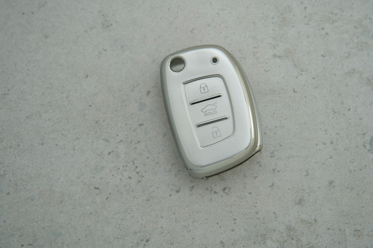 Чохол Hyundai 3 кнопки тип 2 сірий-срібло з поліуретану — надійний та стильний аксесуар для ключа Elantra/Verna, який захищає від подряпин та зносу, одночасно додаючи елегантності.
