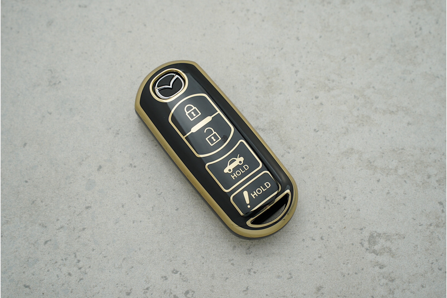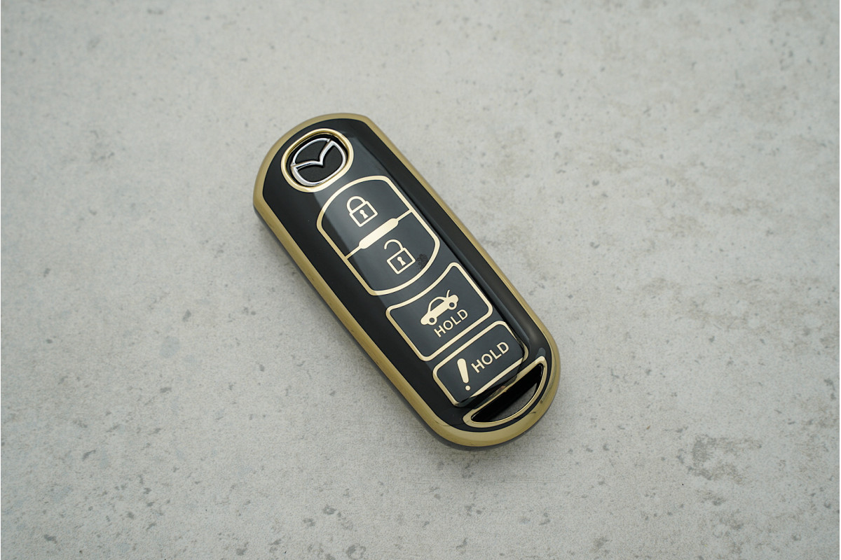 Чохол Mazda чорний-золото на 4 кнопки забезпечує надійний захист ключа та сучасний, привабливий вигляд щодня.