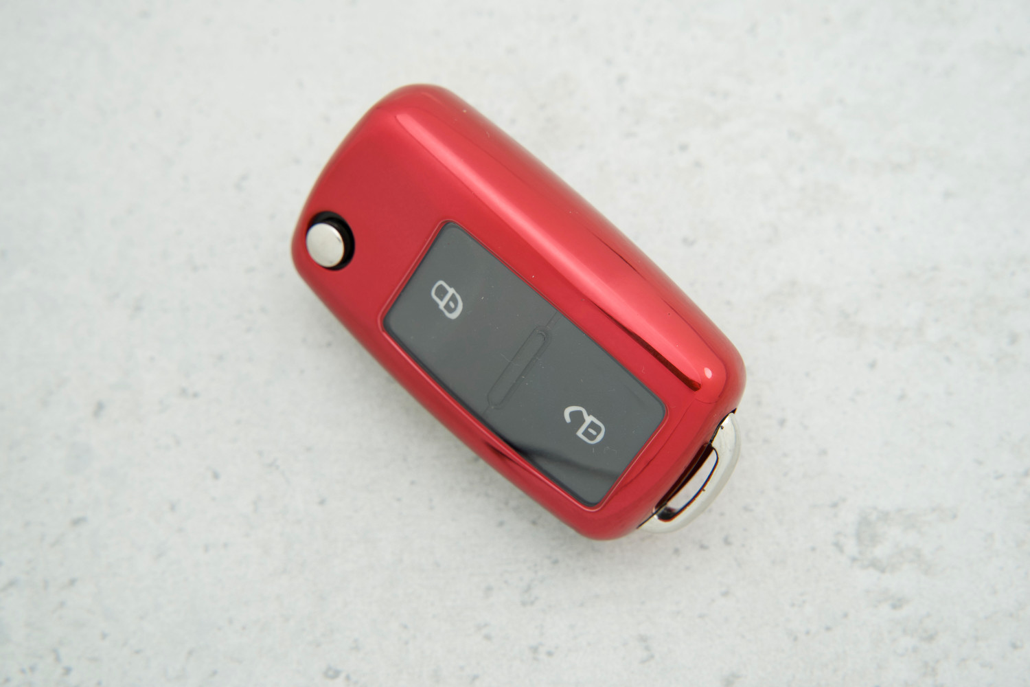Чохол VW 3 кнопки червоний прозорий з поліуретану — яскравий та практичний аксесуар для захисту ключа Volkswagen, що поєднує гнучкість матеріалу та сучасний зовнішній вигляд.