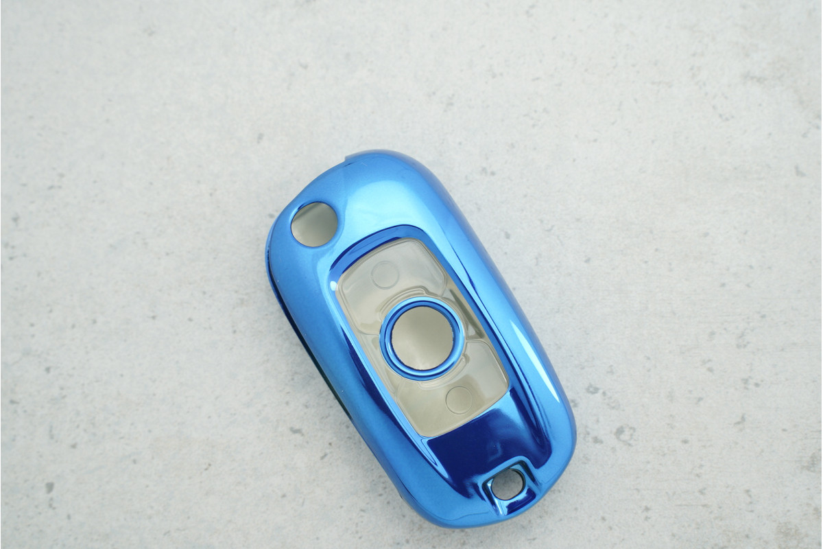 Чохол Buick 2 кнопки синій прозорий поліуретан (Excelle / Verano / Regal) — практичний та стильний аксесуар для захисту ключа, який оберігає його від подряпин, забруднень і щоденного зносу, зберігаючи при цьому функціональність та акуратний вигляд.