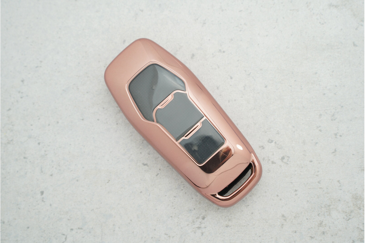 Чохол Ford рожевий прозорий з поліуретану — стильний та практичний захист для ключів з 3 кнопками, підходить для моделей Mondeo, Explorer, Mustang та Focus, забезпечуючи надійність та сучасний вигляд.