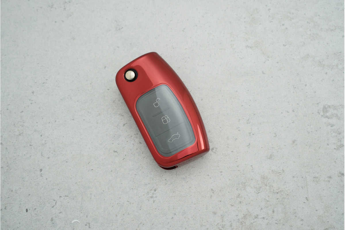 Чохол Ford 3 кнопки червоний прозорий з поліуретану — яскравий та практичний захист для ключів Fox, Dionysia та EcoSport, що поєднує міцність матеріалу та стильний сучасний вигляд.
