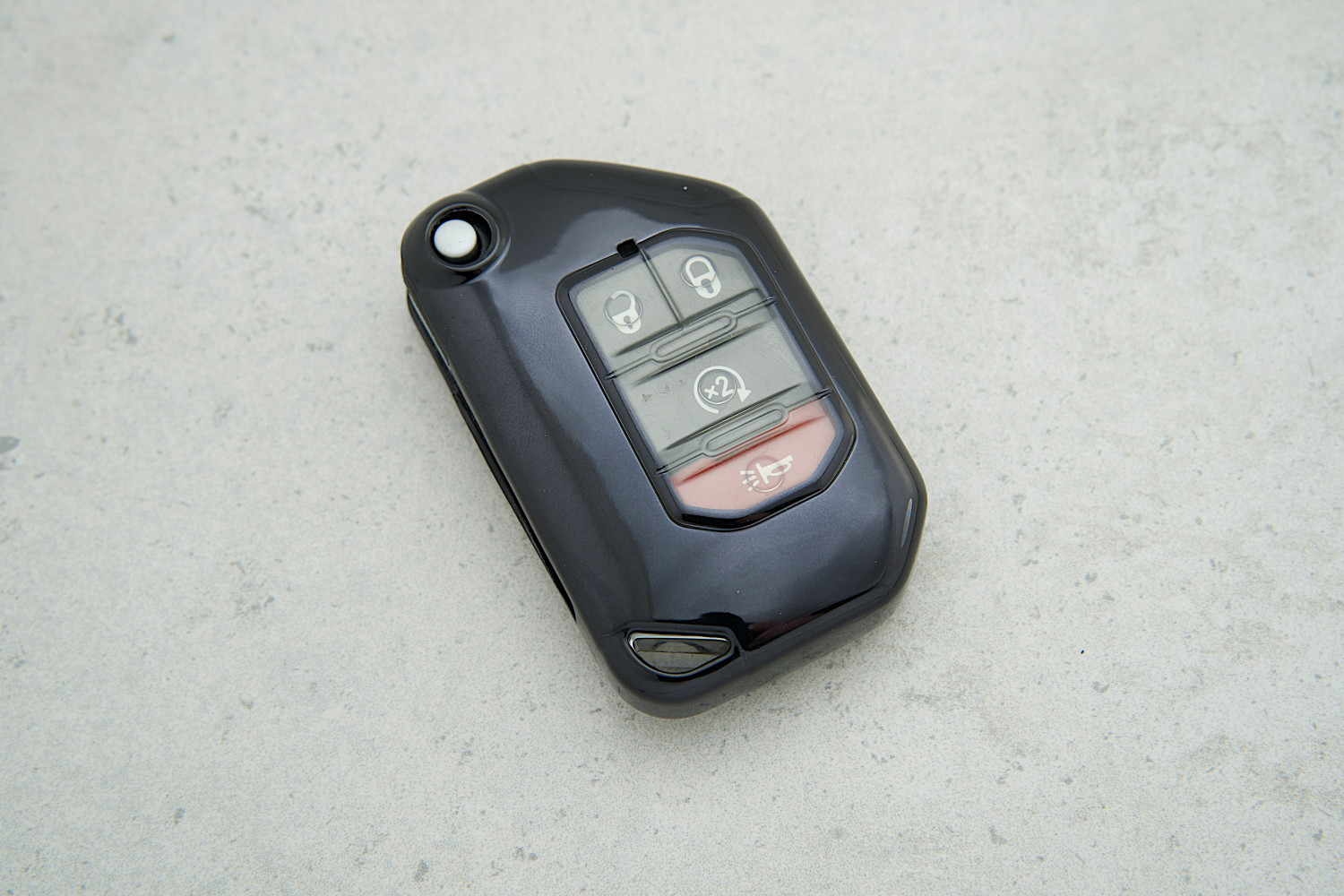 Чохол Jeep чорний прозорий поліуретан на 3 кнопки — практичний аксесуар для захисту ключа, що зберігає стильний вигляд і зручність використання щодня для моделей Cherokee, Renegade, Compass та Rubicon.