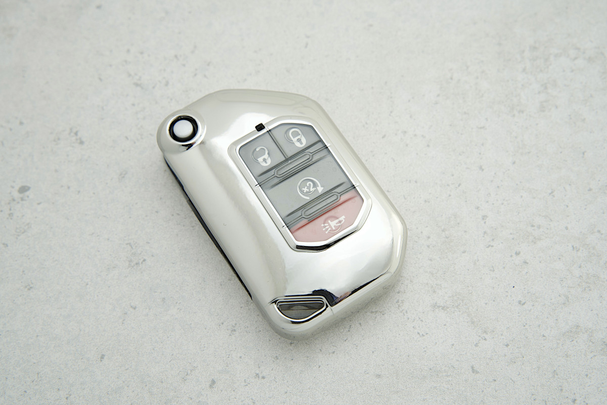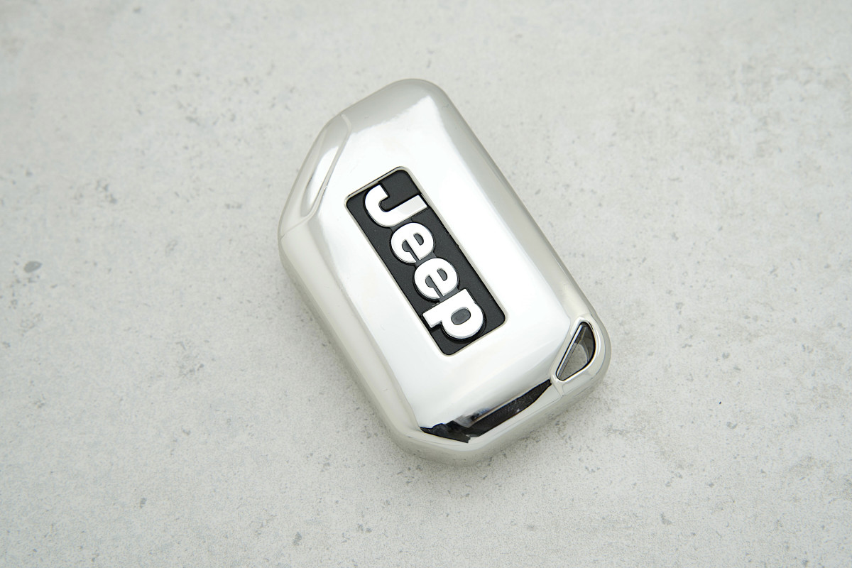 Чохол Jeep срібний прозорий поліуретан на 3 кнопки — практичний аксесуар для захисту ключа, що поєднує прозорість і елегантний сучасний вигляд, підкреслюючи преміальний характер автомобіля.