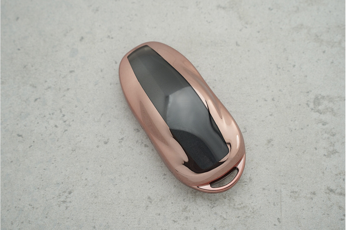 Чохол Tesla на 2 кнопки для Model S рожевого кольору з поліуретану — стильне та практичне рішення для захисту ключа, яке додає яскравого акценту у щоденному користуванні.