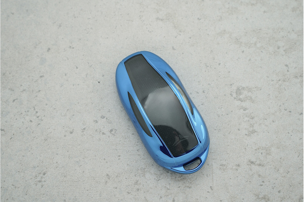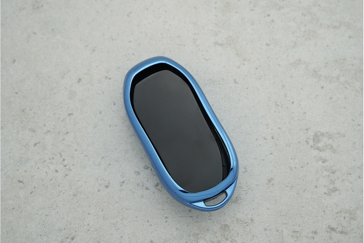 Чохол Tesla синій поліуретан (тип 2) на 2 кнопки для Model S — практичний аксесуар, що забезпечує захист ключа та додає йому сучасного вигляду у щоденному використанні.