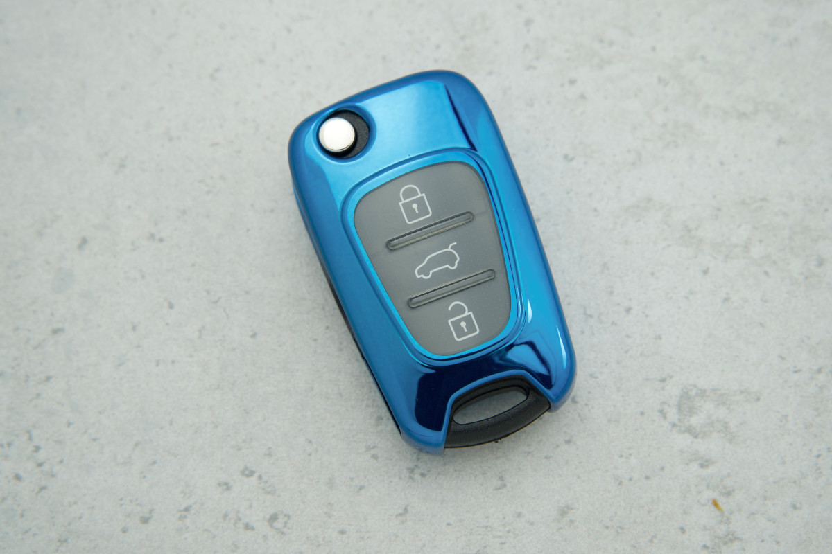 Чохол Hyundai синій прозорий поліуретан на 3 кнопки для моделей Sportage — практичний аксесуар для щоденного захисту автомобільного ключа від подряпин і потертостей.