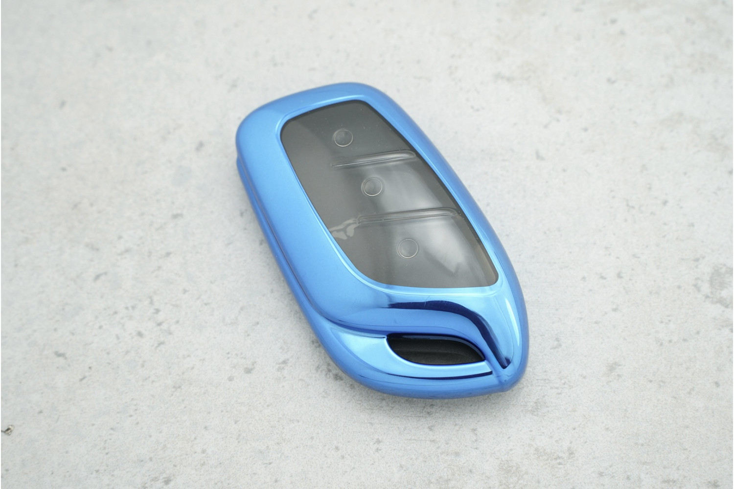 Чохол Roewe прозорий синій на 3 кнопки з поліуретану — універсальний аксесуар для захисту ключів різних моделей, що поєднує практичність і сучасний стиль.