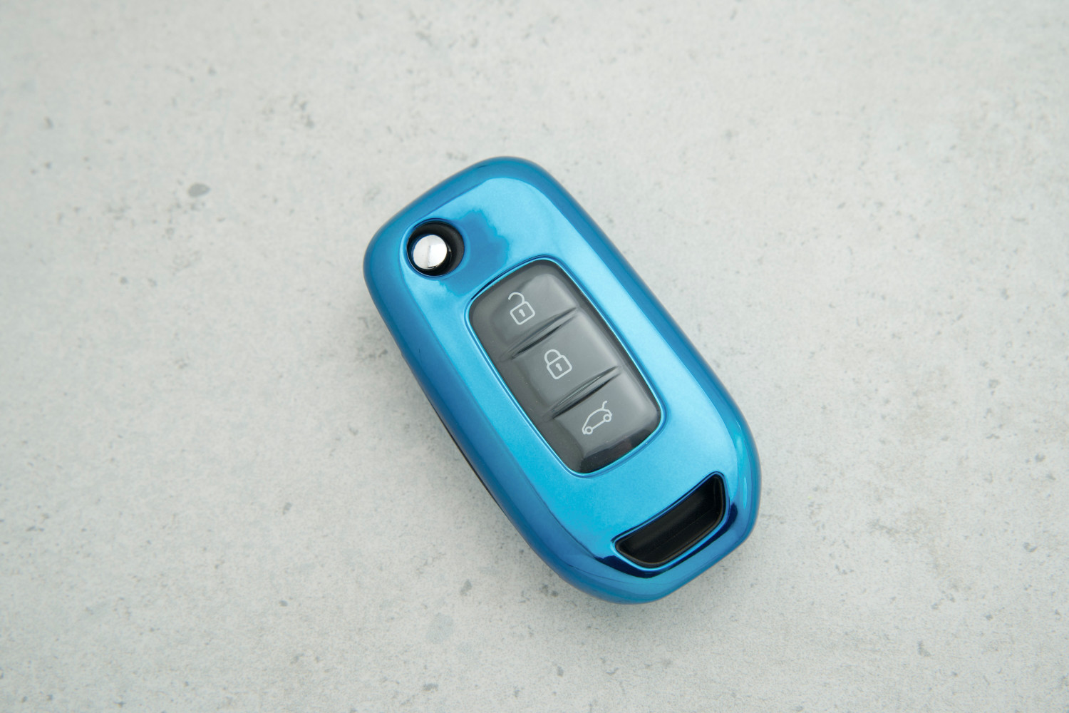 Чохол Renault синій прозорий на 3 кнопки надійно захищає ключ та робить його стильним і привабливим щодня.