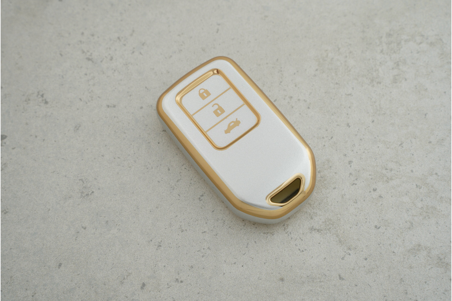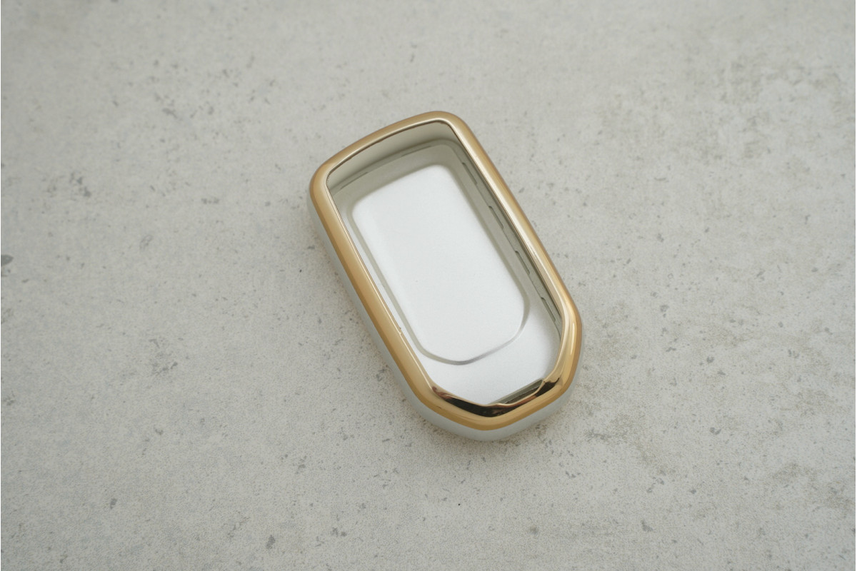 Чохол Honda на 3 кнопки сірий-золото з поліуретану для Cover — елегантний і практичний аксесуар, що захищає ключ від подряпин, ударів і забруднень, поєднуючи сучасний стиль із щоденною зручністю.