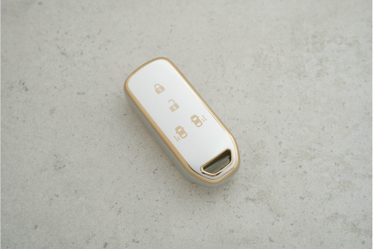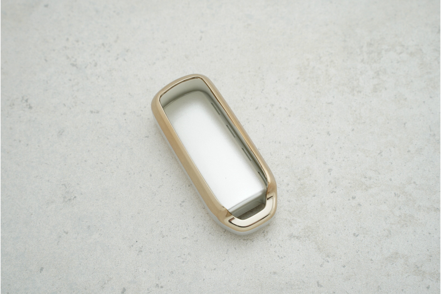 Чохол Honda на 4 кнопки сірий-золото з поліуретану для N-BOX — елегантний і практичний аксесуар, що захищає ключ від подряпин та зносу, одночасно підкреслюючи сучасний і преміальний вигляд автомобільного ключа.