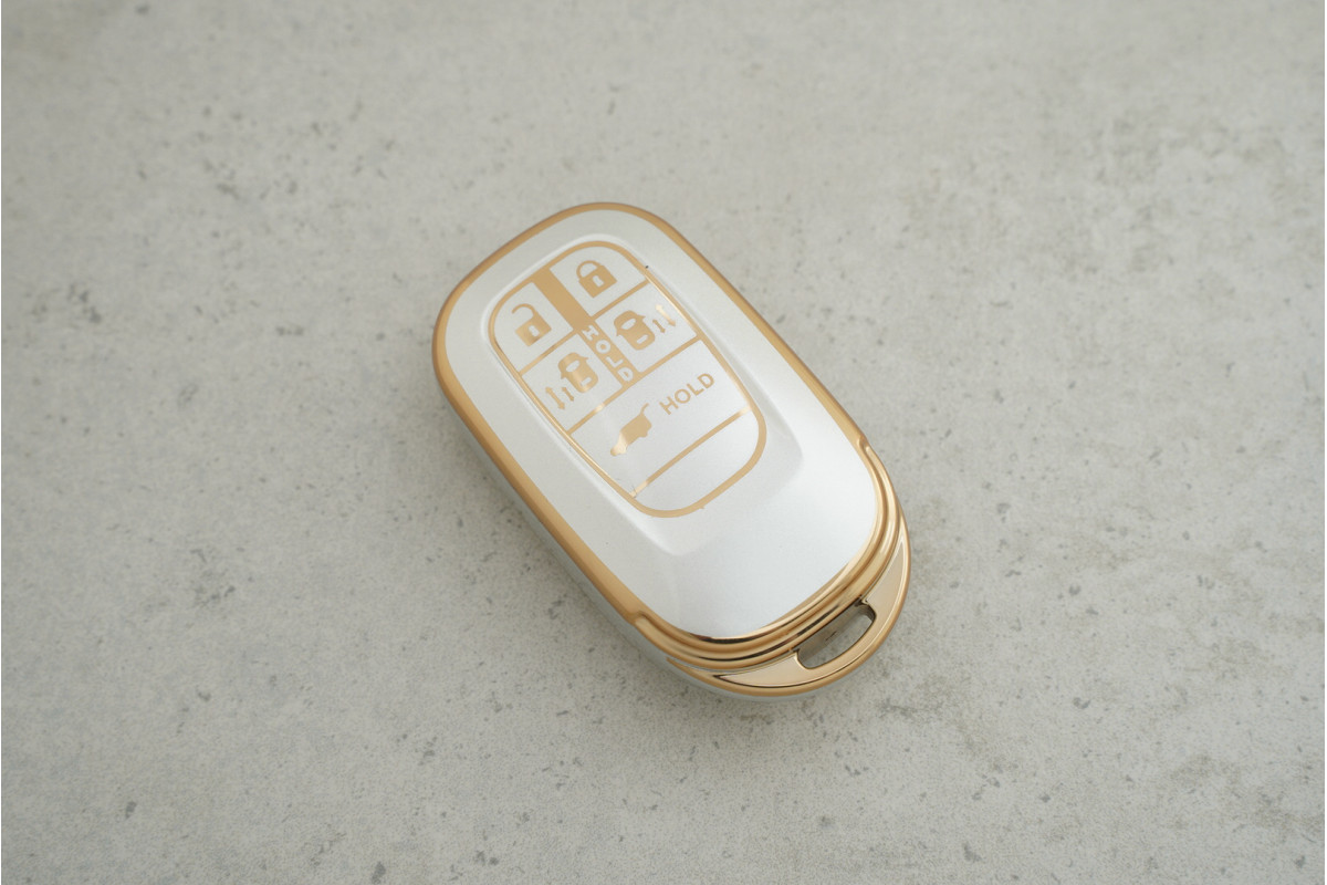 Чохол Honda на 5 кнопок сірий-золото з поліуретану для Civic та Accord 2022 — стильний та надійний аксесуар, що захищає ключ від подряпин, ударів та забруднень, зберігаючи преміальний вигляд і комфорт у щоденному використанні.