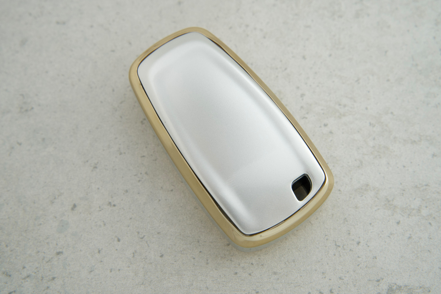 • Вишуканий дизайн: Поєднання сірого кольору з золотими акцентами підкреслює преміальний стиль автомобіля та робить ключ більш привабливим.