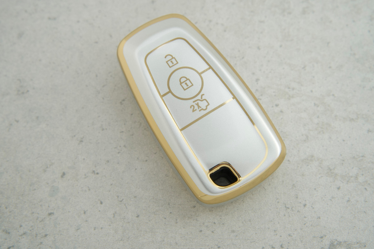 Чохол Ford сірий-золото поліуретан на 3 кнопки — елегантний та практичний аксесуар для захисту ключа, який поєднує стильний вигляд і зручність у щоденному використанні.