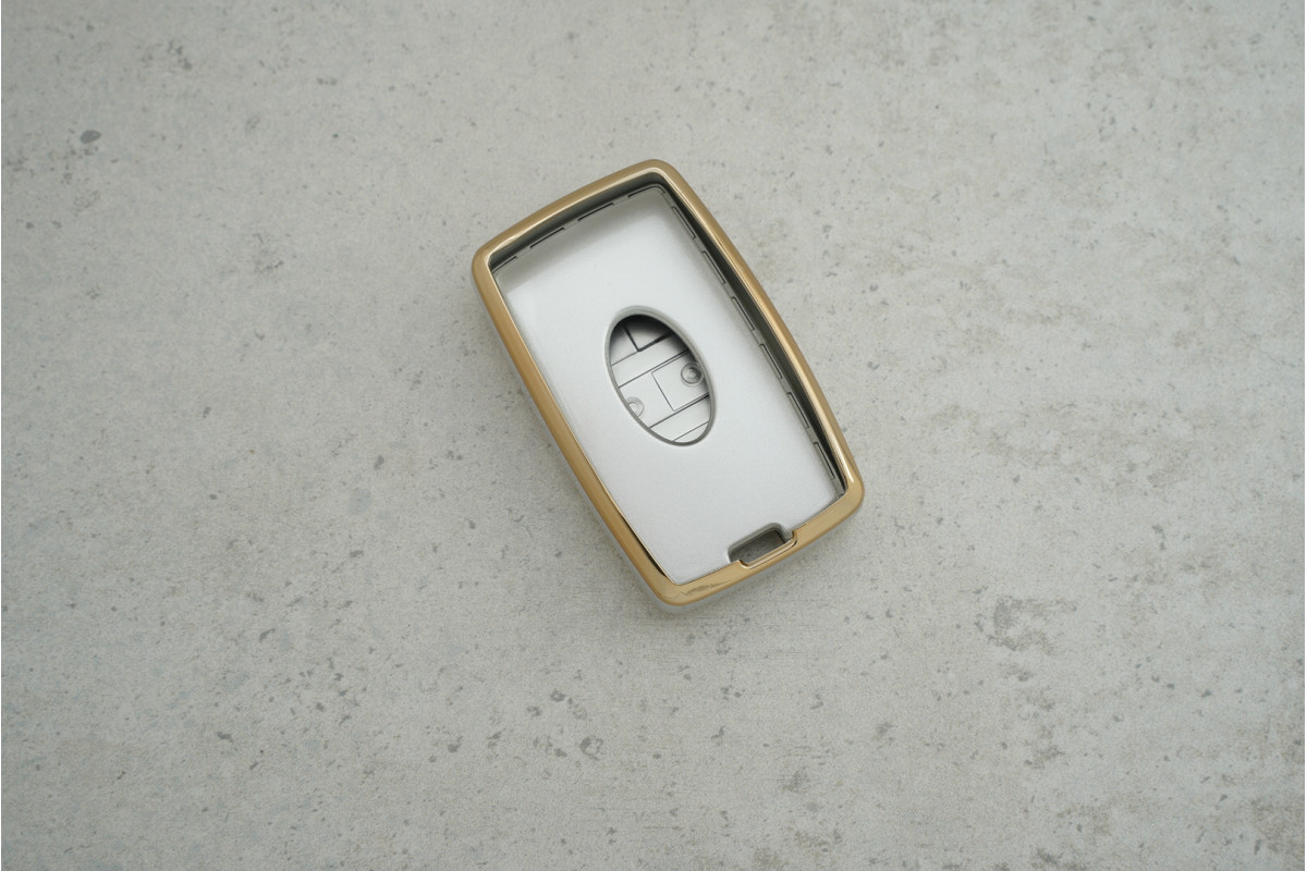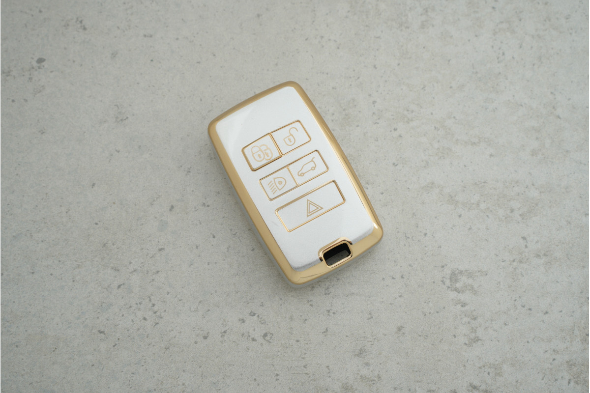 Чохол Land Rover сірий-золото поліуретан на 4+1 кнопки для Freelander — стильний та міцний аксесуар, що надійно захищає ключ від подряпин і пошкоджень, одночасно підкреслюючи преміальний вигляд автомобіля.