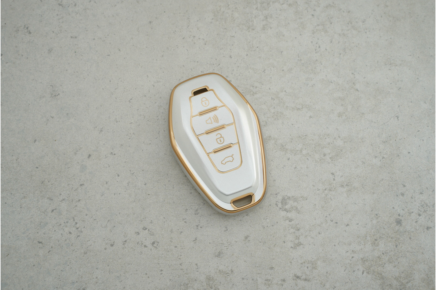 Чохол Chery сірий-золото на 3+1 кнопки забезпечує надійний захист ключа, зберігаючи його привабливий вигляд і функціональність у щоденному користуванні.