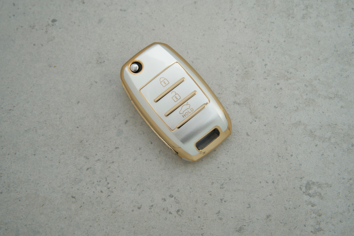 Чохол KIA сірий-золото поліуретан на 3 кнопки Sportage Америка — стильний захисний аксесуар для автоключа, що допомагає зберегти його від подряпин та зносу.