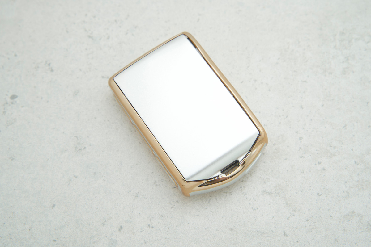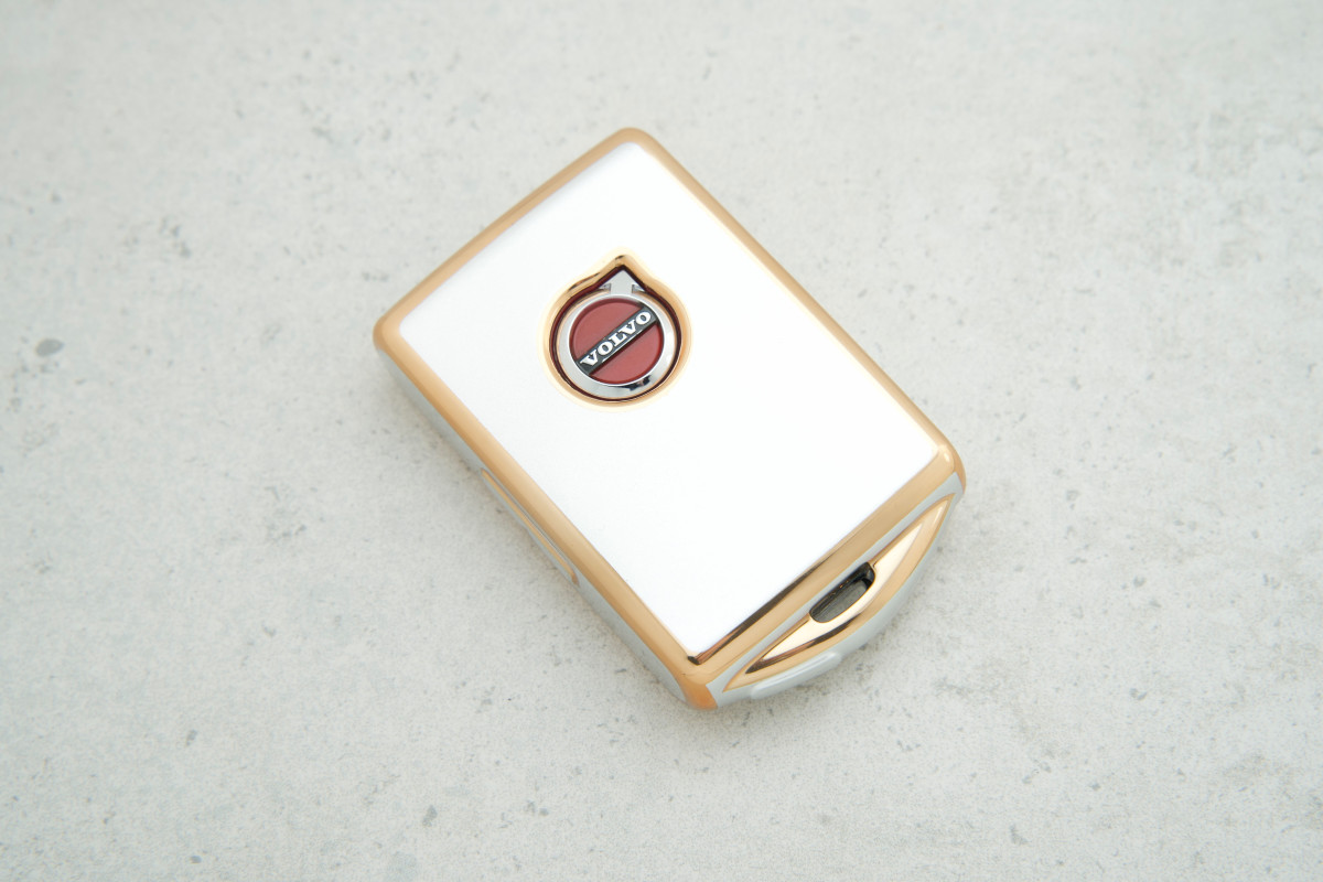 Чохол Volvo сірий-золото поліуретан на 3 кнопки — елегантний і міцний аксесуар, що захищає ключ від подряпин і пошкоджень, додаючи йому сучасного вигляду.