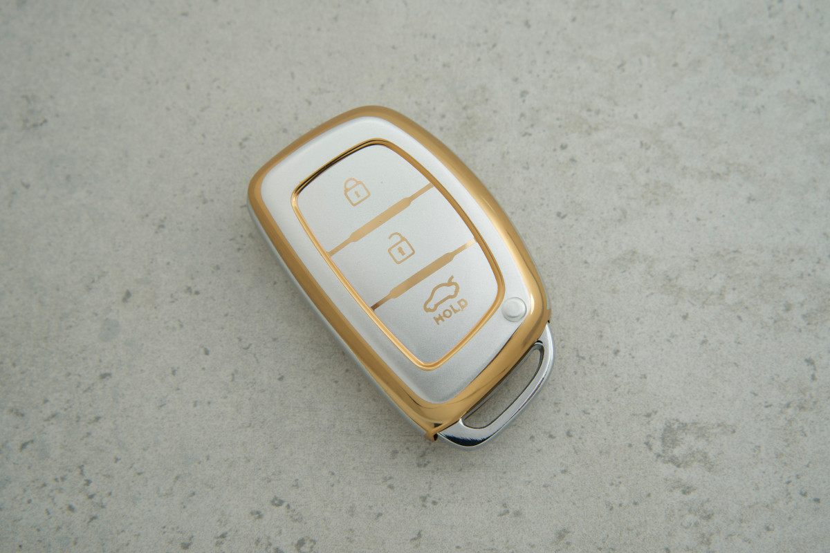 Чохол Hyundai сірий-золото поліуретан на 3 кнопки для моделей Mistra та Elantra — стильний та практичний аксесуар для захисту ключа від подряпин і зношування.