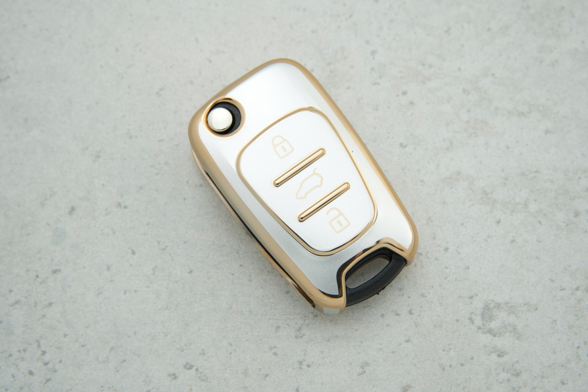 Чохол Hyundai сірий-золото поліуретан на 3 кнопки для моделей Accent — компактний і стильний аксесуар, що захищає ключ від подряпин і пошкоджень, зберігаючи його елегантний вигляд.