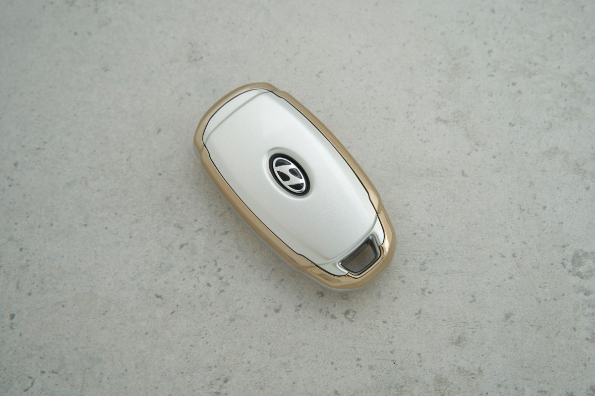 Чохол Hyundai на 4 кнопки сірий-золото з поліуретану (i10, i20, ix20) — стильний аксесуар для надійного захисту автомобільного ключа від подряпин і щоденного зносу.