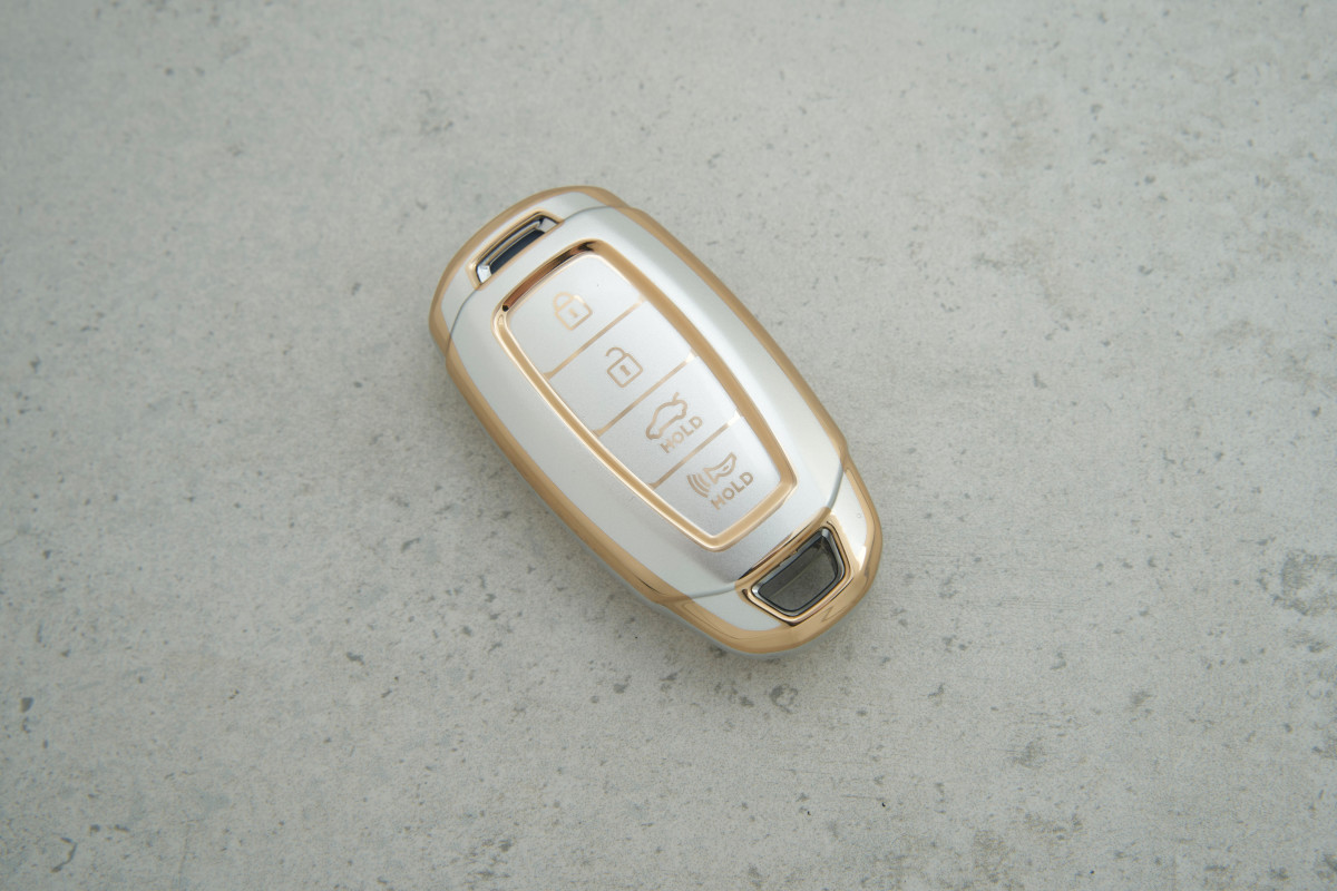 Чохол Hyundai сірий-золото на 4 кнопки допоможе зберегти ключ у відмінному стані та підкреслить його стильний вигляд.