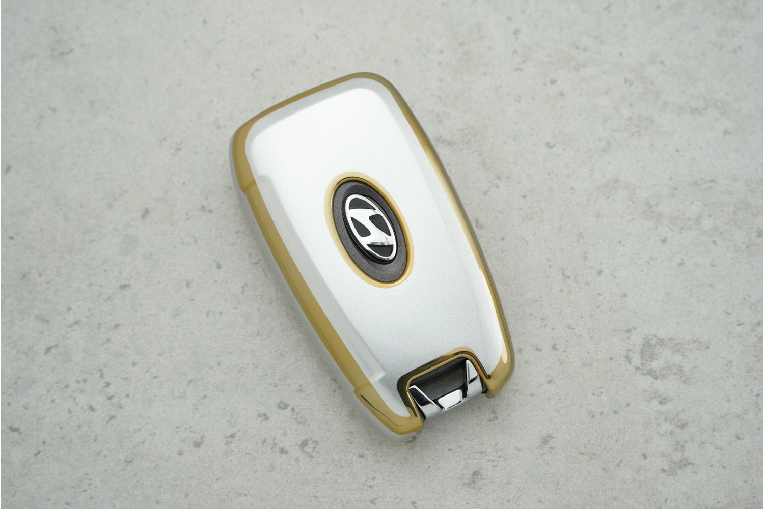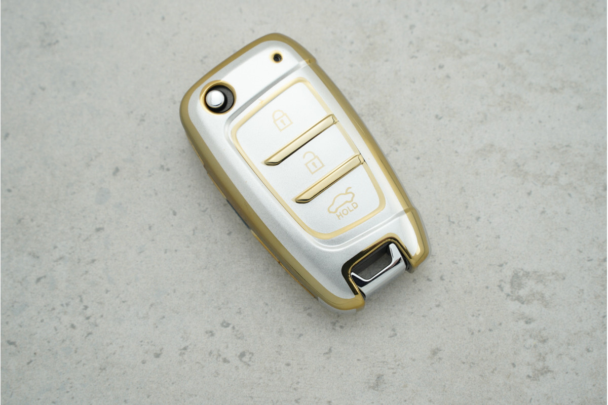 Чохол Hyundai сірий із золотим поліуретан на 3 кнопки для моделей Sonata — елегантний аксесуар для захисту ключа та збереження його охайного вигляду.