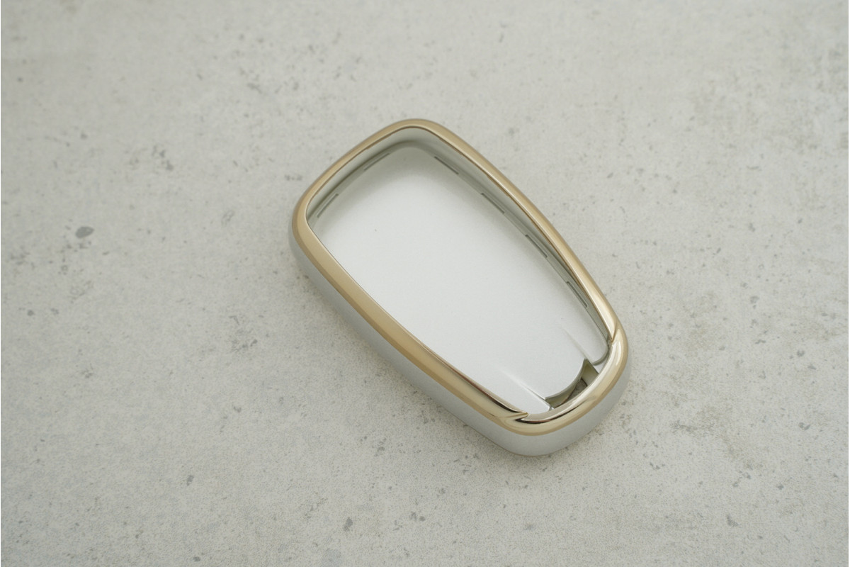 • Стильний дизайн: Сірий колір у поєднанні з золотими вставками додає ключу елегантності та підкреслює індивідуальність автомобіля.