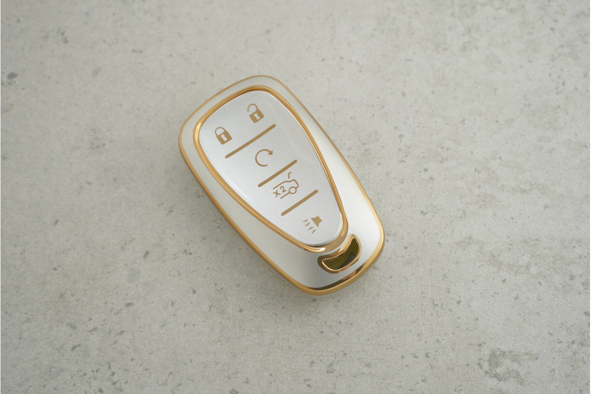 Чохол Chevrolet сірий-золото поліуретан на 4+1 кнопки — елегантний та практичний аксесуар для ключа, який поєднує надійний захист і преміальний вигляд у повсякденному використанні.