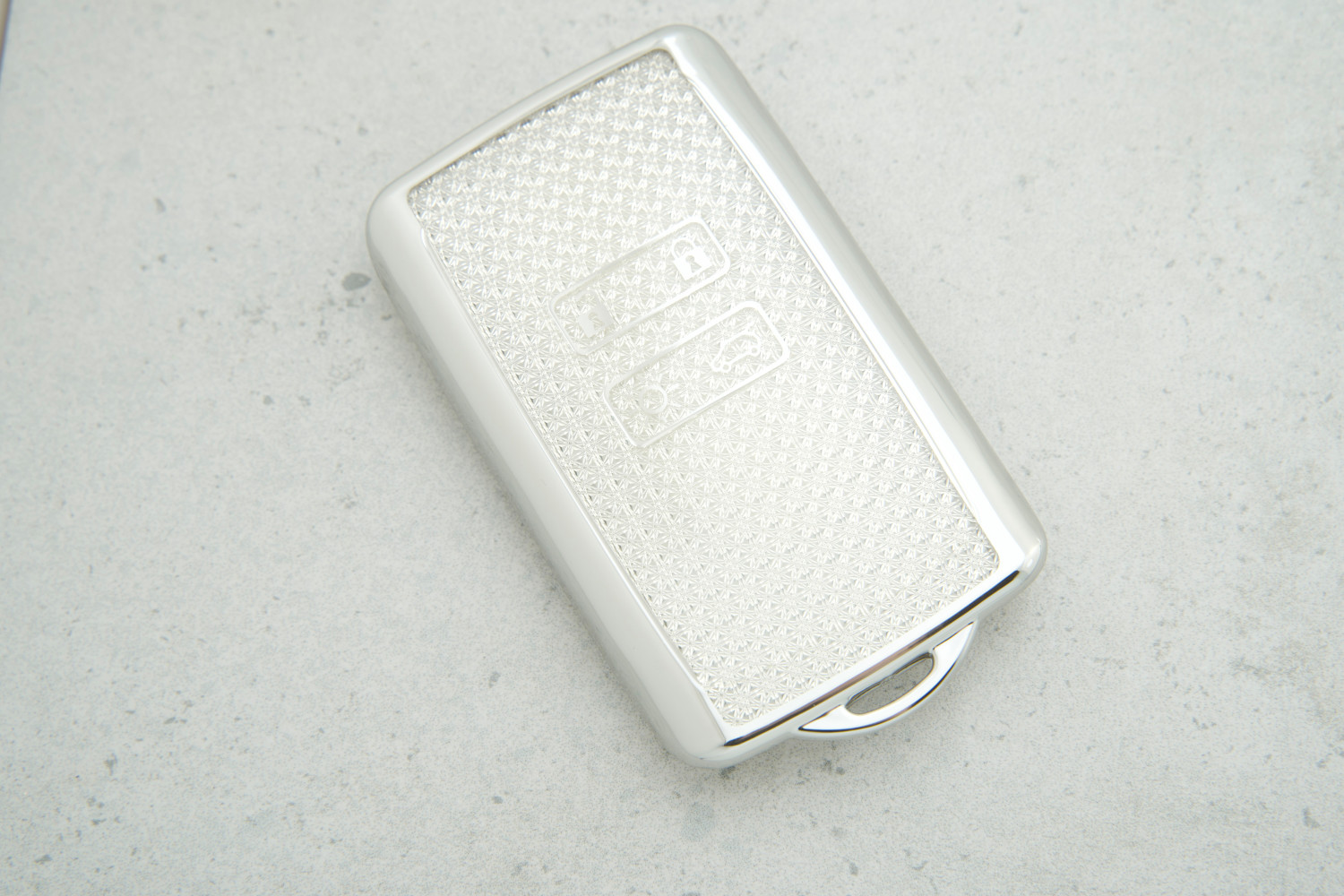 Чохол Renault срібло Diamonds формату “картка” на 4 кнопки з поліуретану — стильний аксесуар, що поєднує захист ключа та елегантний блисковий дизайн, підкреслюючи преміальність автомобіля.