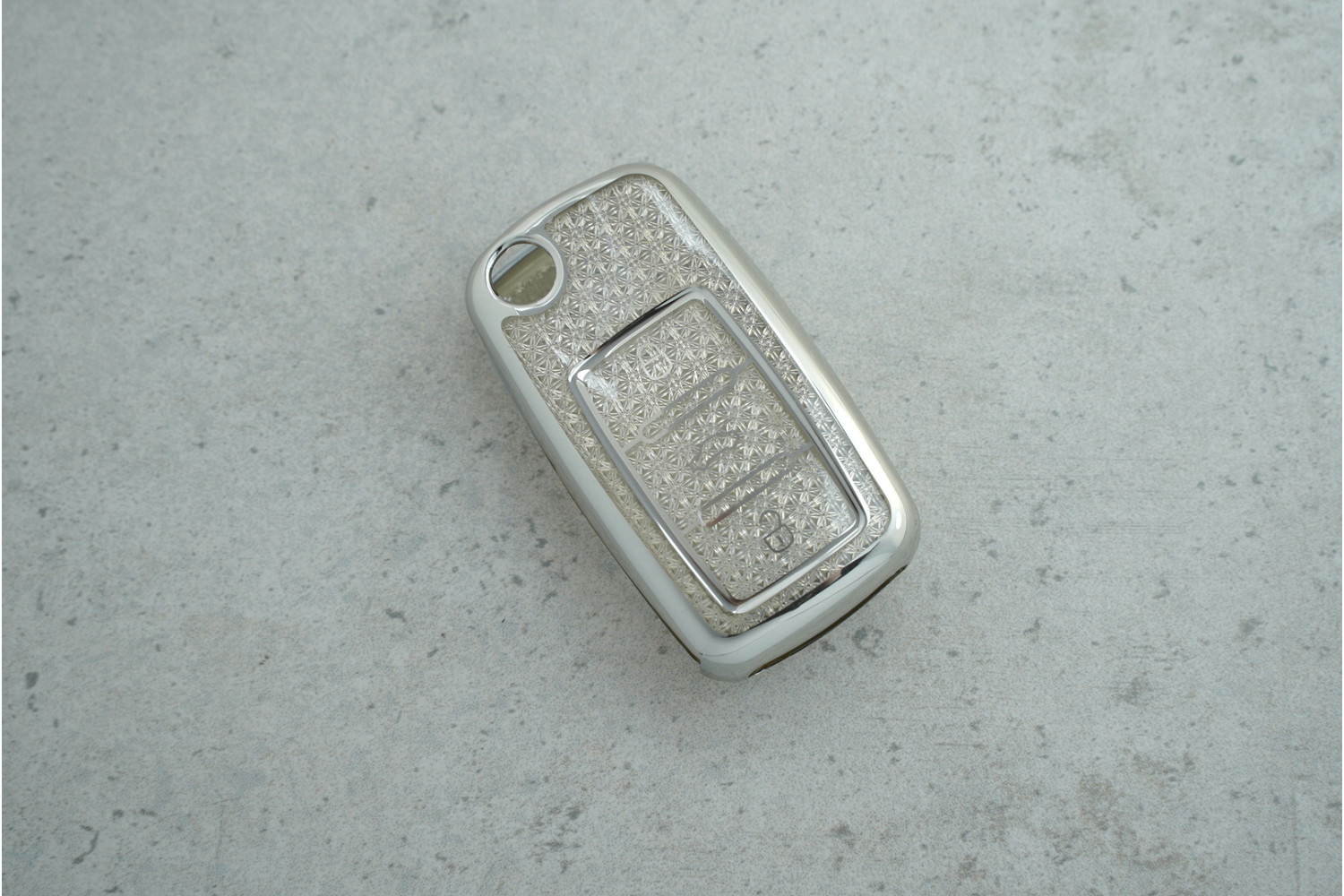 Чохол VW Diamonds срібний з поліуретану на 3 кнопки для Passat, Tiguan, Golf, Polo — стильний аксесуар для автомобільного ключа, який поєднує захист і сучасний дизайн із “діамантовою” текстурою.