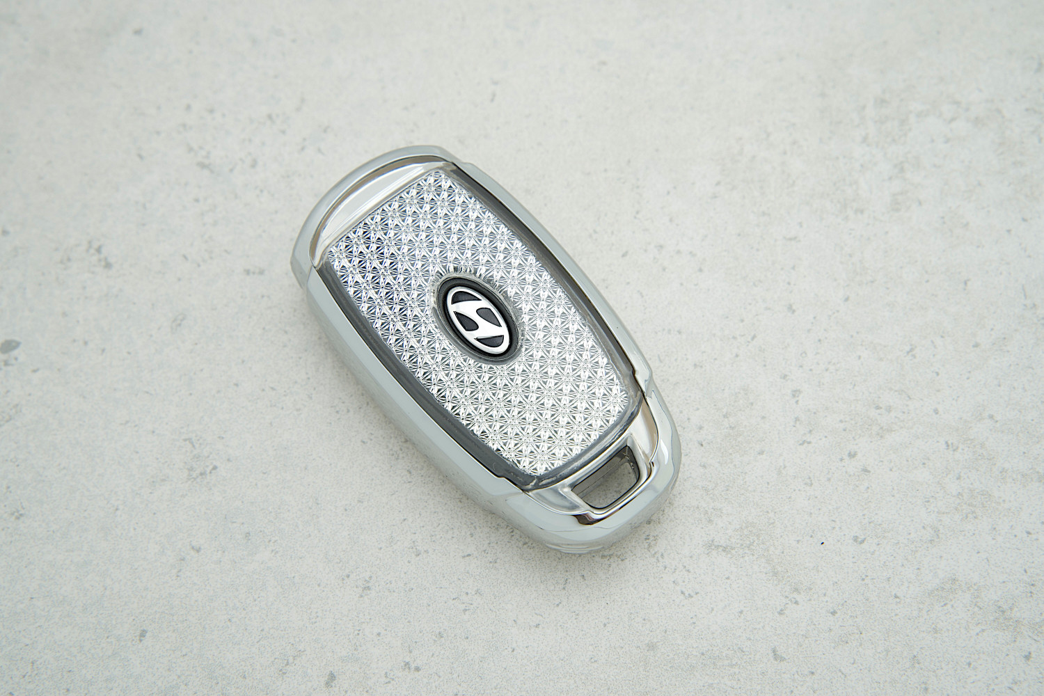 Чохол Hyundai срібний Diamonds з поліуретану — елегантний аксесуар для ключа, що поєднує захист від пошкоджень і стильний блиск для моделей Kona 2020.