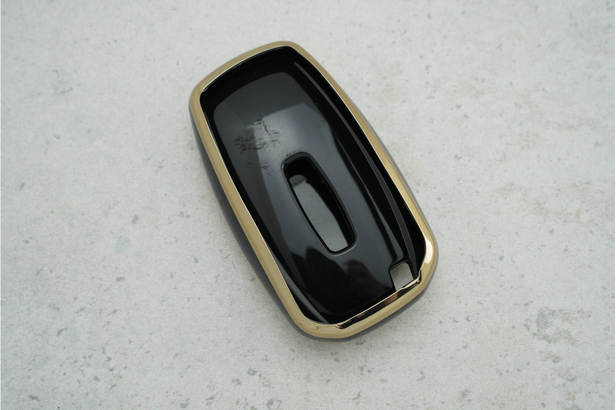 Чохол Lincoln чорно-золотий поліуретан на 4 кнопки для MKC, MKZ та MKX 2018 — елегантний та міцний аксесуар, який захищає ключ від подряпин і зношування, підкреслюючи преміальний стиль автомобіля.
