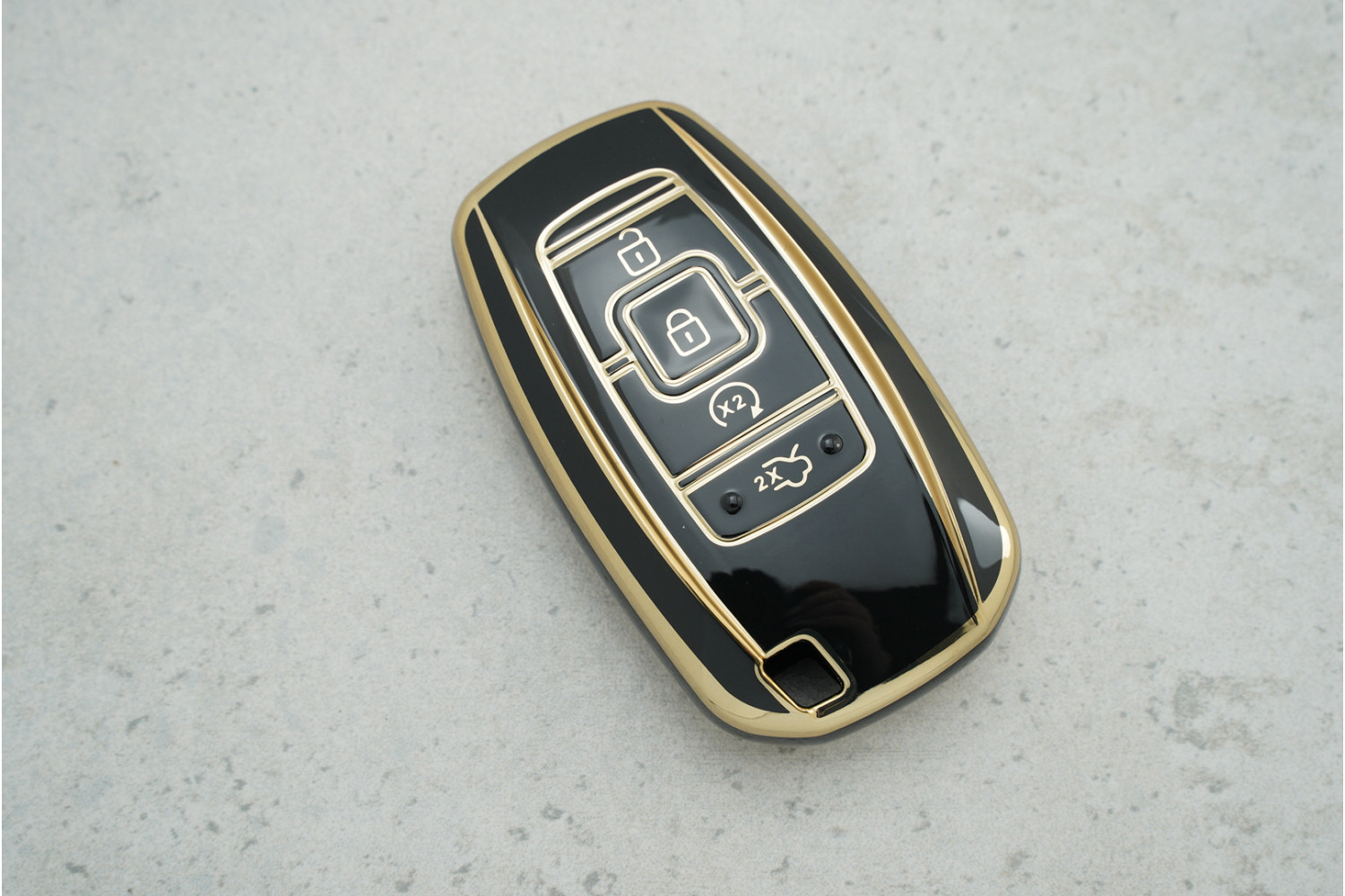 • Вишуканий дизайн: Поєднання чорного кольору з золотими акцентами підкреслює розкішний вигляд ключа та автомобіля.