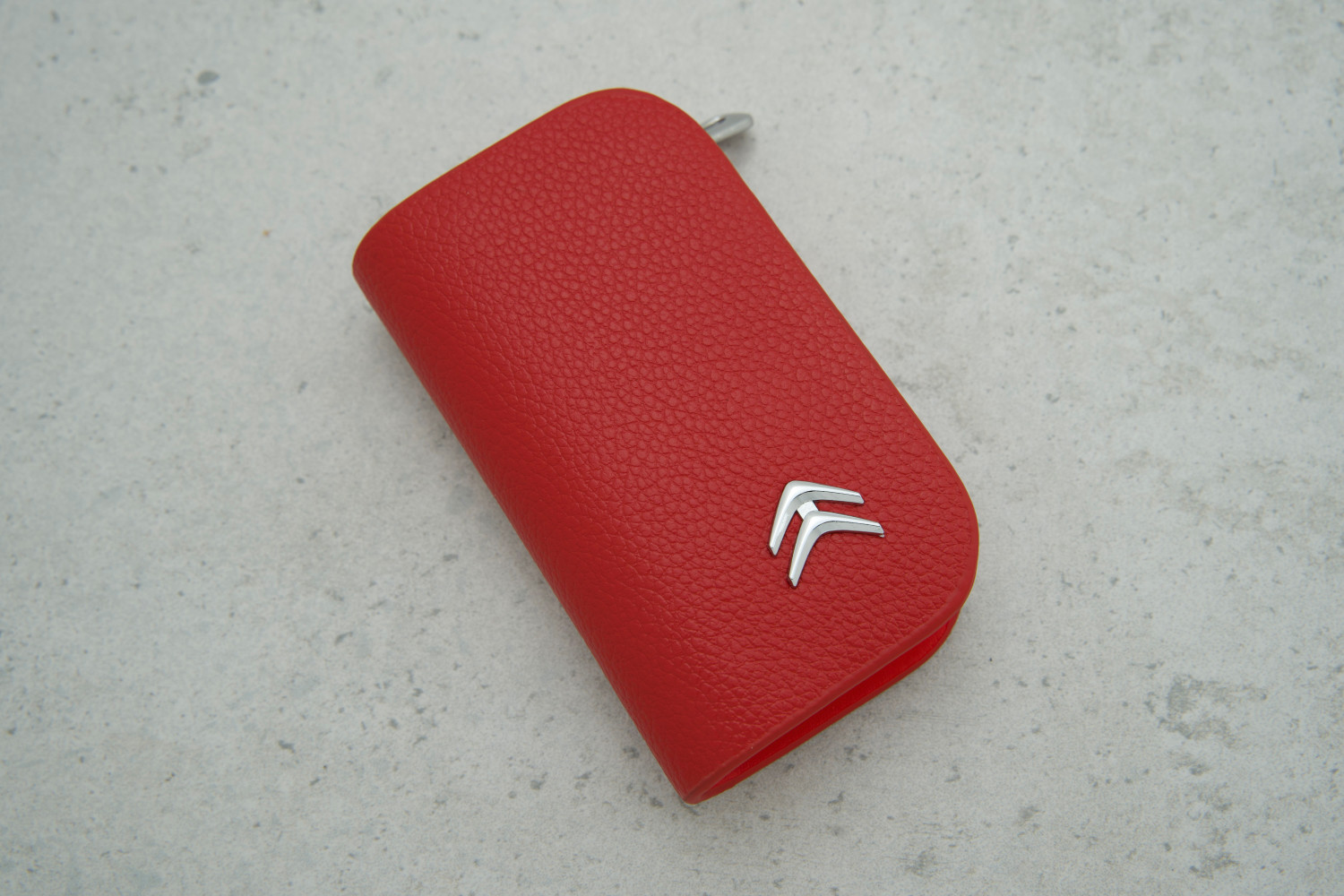 Ключниця-чохол для автоключів Citroen червона шкіряна — практичний аксесуар для акуратного зберігання та захисту автомобільного ключа від подряпин і щоденного зносу.