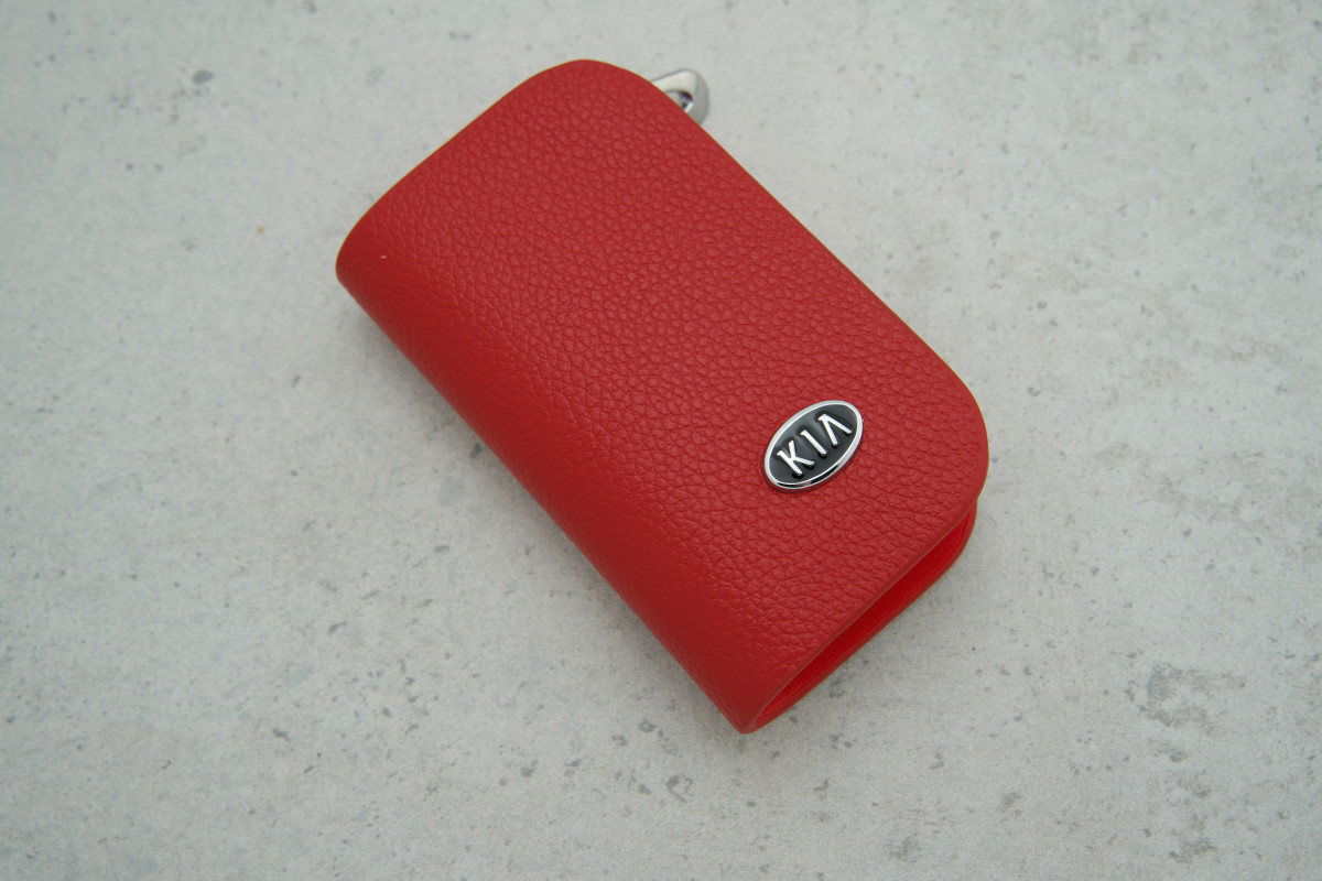 Ключниця-чохол Kia червона шкіра допомагає зберегти ключ у відмінному стані та додає практичності у щоденному використанні.