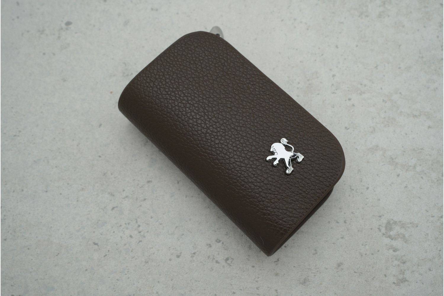 Ключниця-чохол для автоключів Peugeot темно-коричнева шкіряна — елегантний аксесуар для надійного зберігання ключа та захисту від подряпин і щоденного зносу.