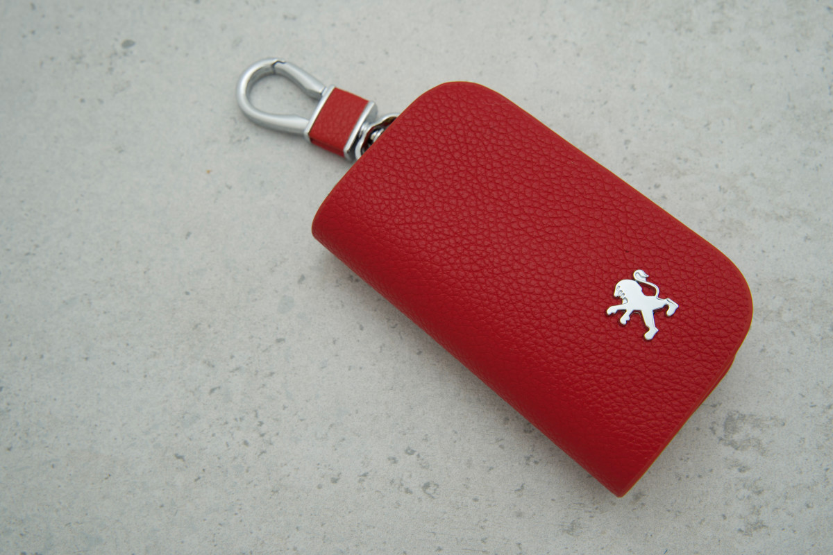 Ключниця-чохол для автоключів Peugeot червона шкіряна — зручний аксесуар для надійного збереження ключа та захисту від подряпин і щоденного зносу.