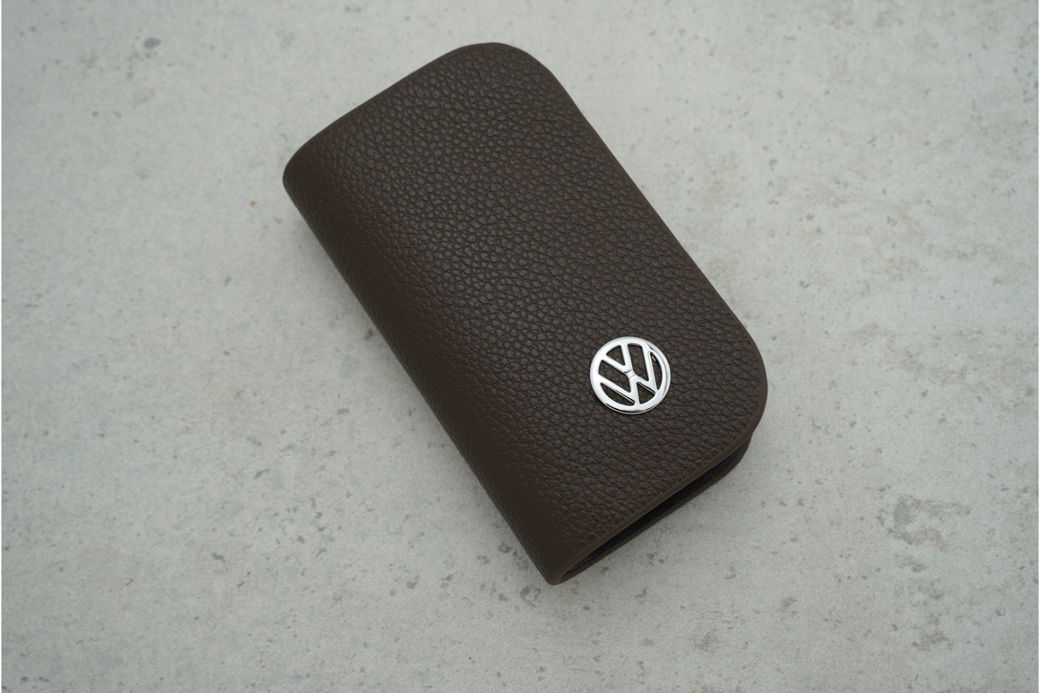 Ключниця-чохол для автоключів VW темно-коричнева шкіряна — практичний аксесуар для захисту ключа від подряпин, пилу та щоденного зносу.