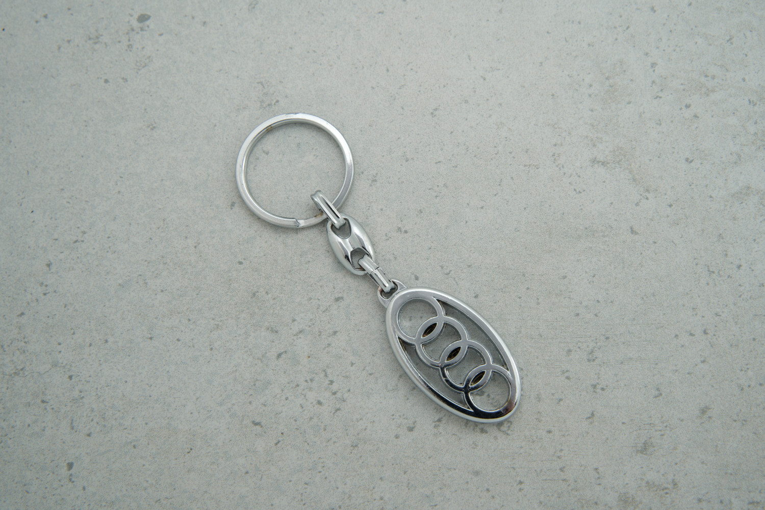 Брелок Audi металевий — міцний і стильний аксесуар для ключів, що поєднує надійність і елегантний вигляд у щоденному використанні.