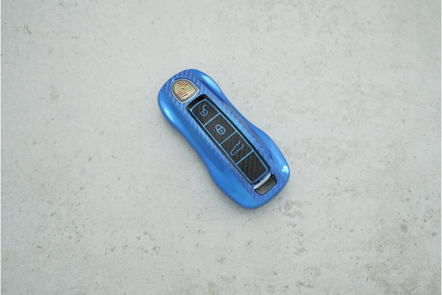 Чохол Porsche на 3 кнопки синій прозорий з поліуретану (Panamera) — практичний аксесуар для захисту ключа від подряпин і щоденного зносу.