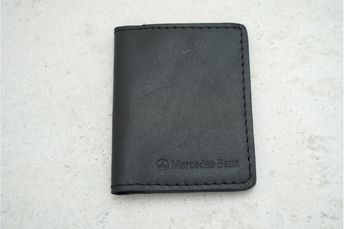 Обкладинка-картхолдер Mercedes чорний зі шкіри — витончений і функціональний аксесуар для зберігання карток та документів, що поєднує стиль і надійність у повсякденному користуванні.