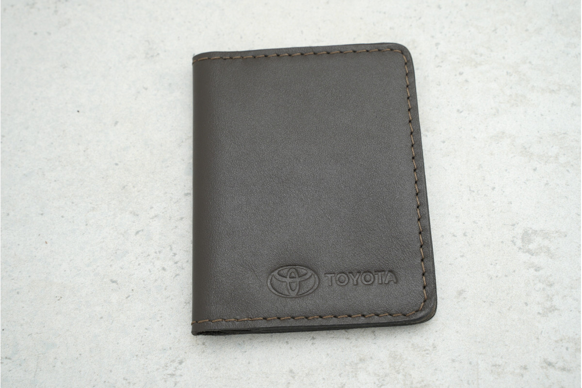 Обкладинка-картхолдер Toyota темно-коричневий зі шкіри — стильний та практичний аксесуар для зберігання карток, що поєднує елегантність і надійний захист у щоденному використанні.